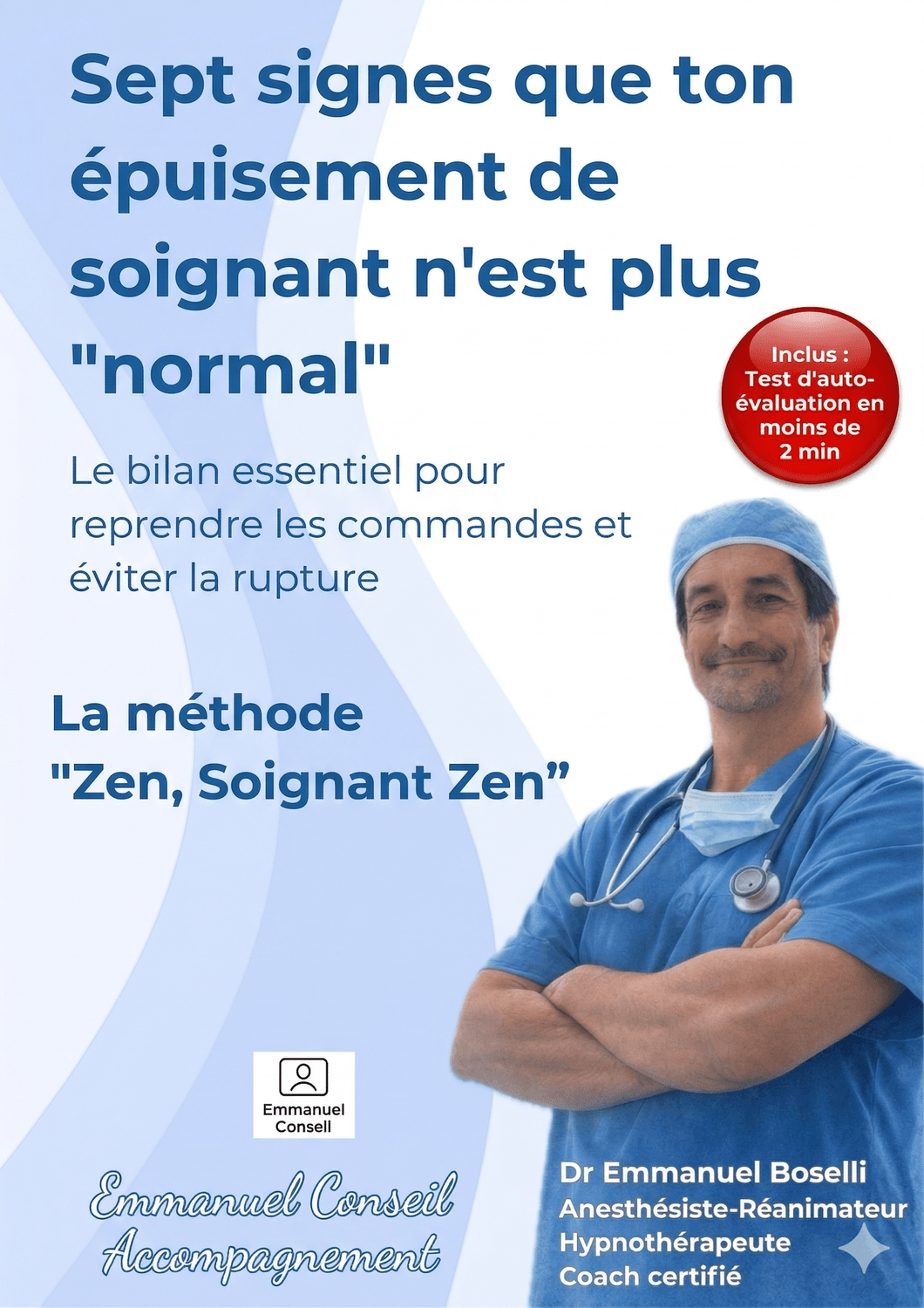Guide conçu par le Dr Emmanuel Boselli, médecin anesthésiste-réanimateur, hypnothérapeute et coach certifié, créateur de la méthode "Zen, Soignant Zen".